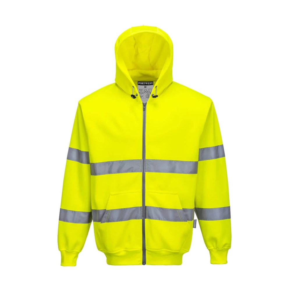 A Portwest sárga színű, fényvisszaverő csíkokkal ellátott pulóver rossz látási körülmények között is ideális láthatóságot biztosít viselőjének. Kényelmesen használható, cipzáros és kapucnis kivitelezésű, gumírozott derékrésszel és két zsebbel rendelkezik. Sokoldalúan használható, kerékpározáshoz, túrázáshoz, kültéri munkavégzéshez alkalmas.